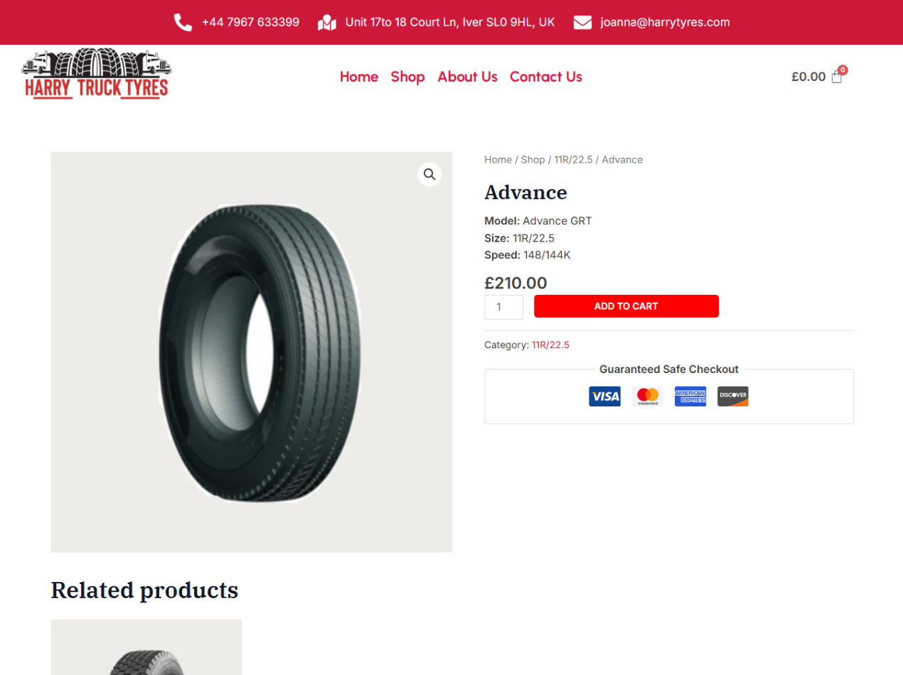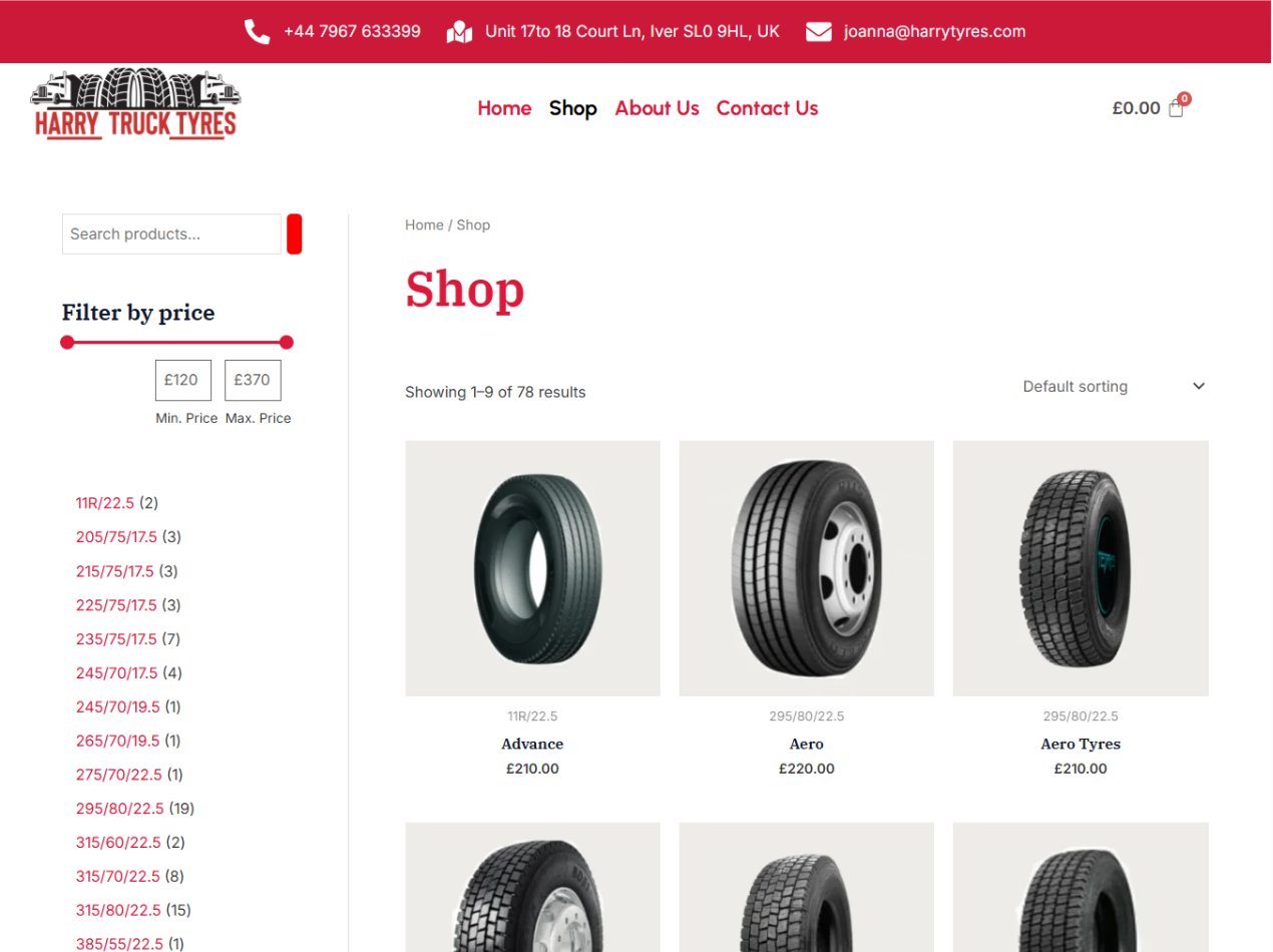 Harry Tyres Ltd Ecommerce Website