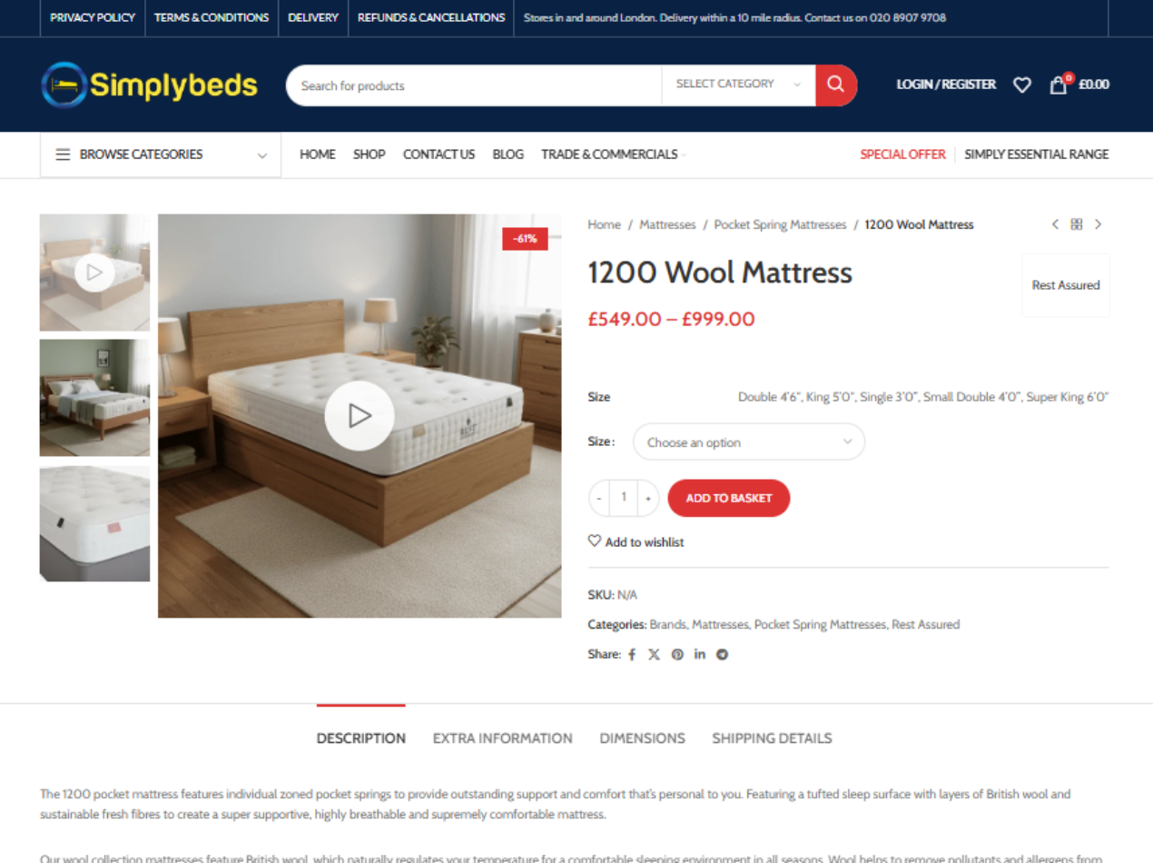 Simply Beds Ltd Ecommerce Website
